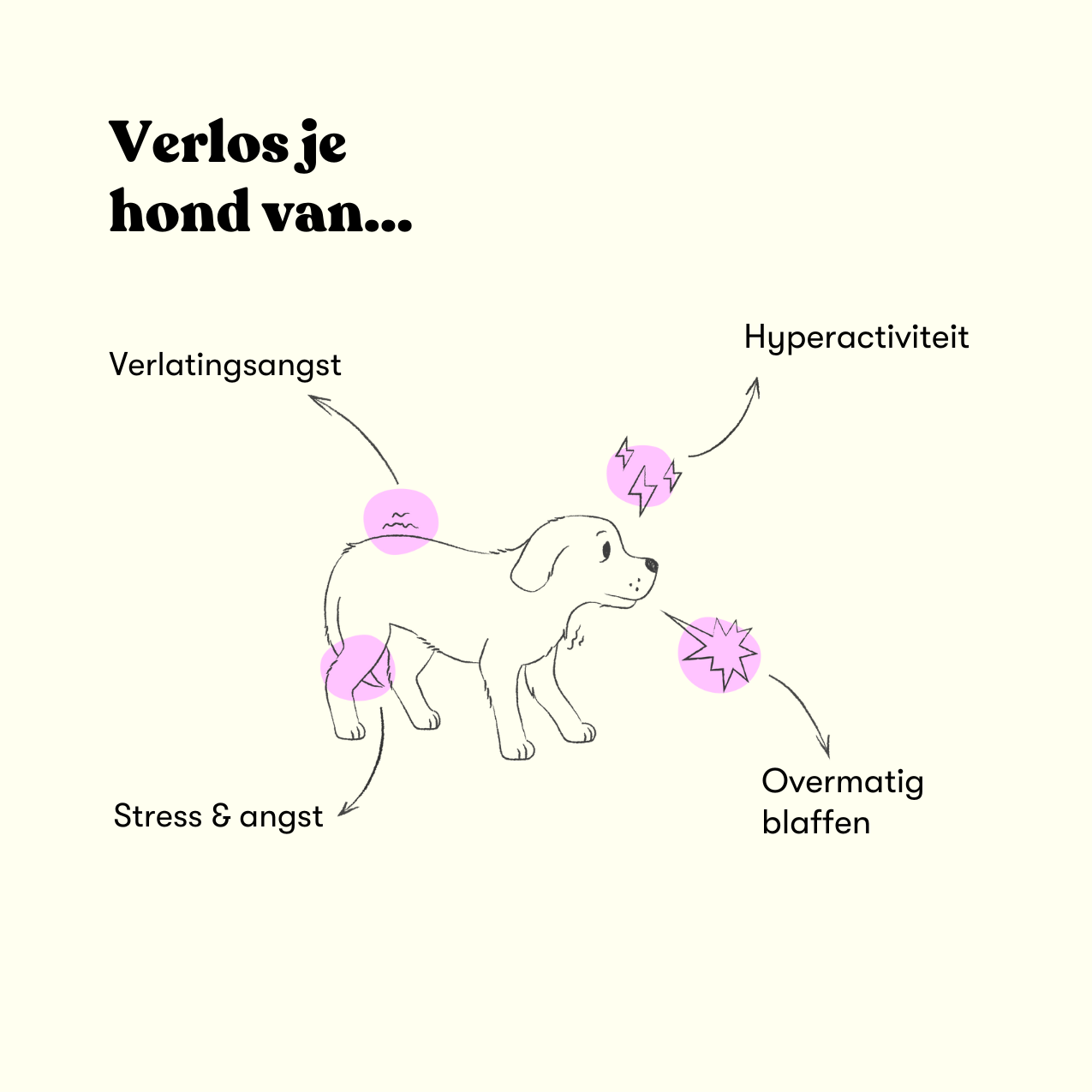 Als dierenarts zien we vaak dat honden last hebben van verlatingsangst. Dit uit zich in geblaf, rusteloosheid en soms zelfs destructief gedrag.