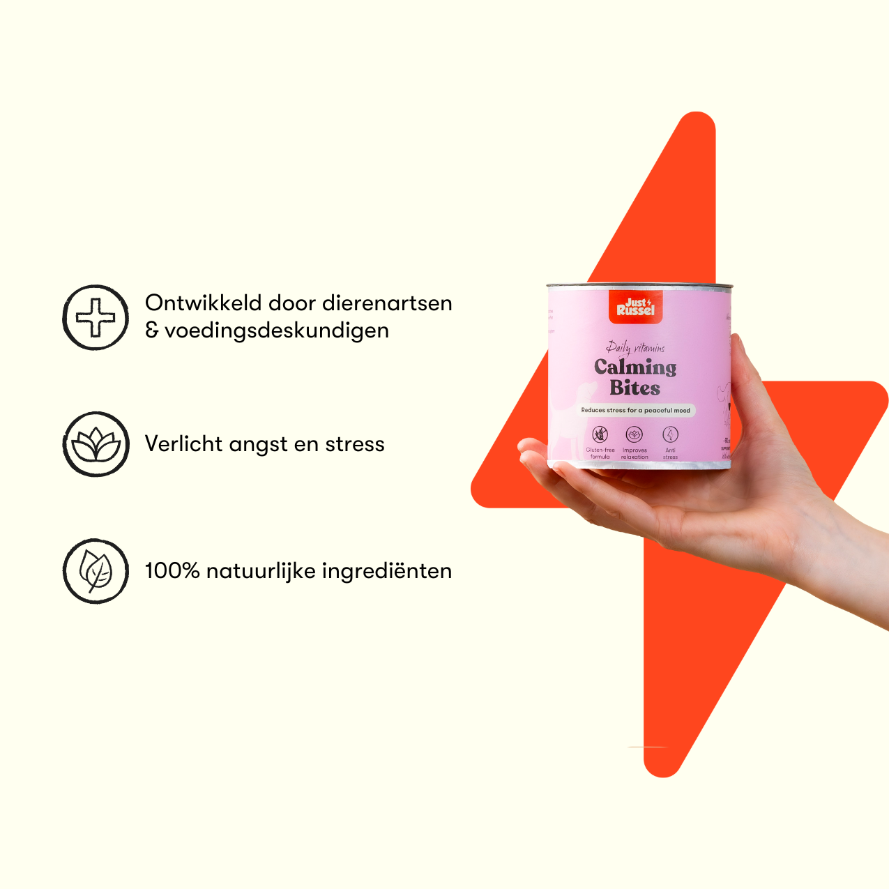 Na verloop van tijd zorgen de natuurlijke voedingsstoffen ervoor dat je hond z'n kalme houding behoudt, angstgerelateerd gedrag vermindert en het algehele welzijn verbetert.