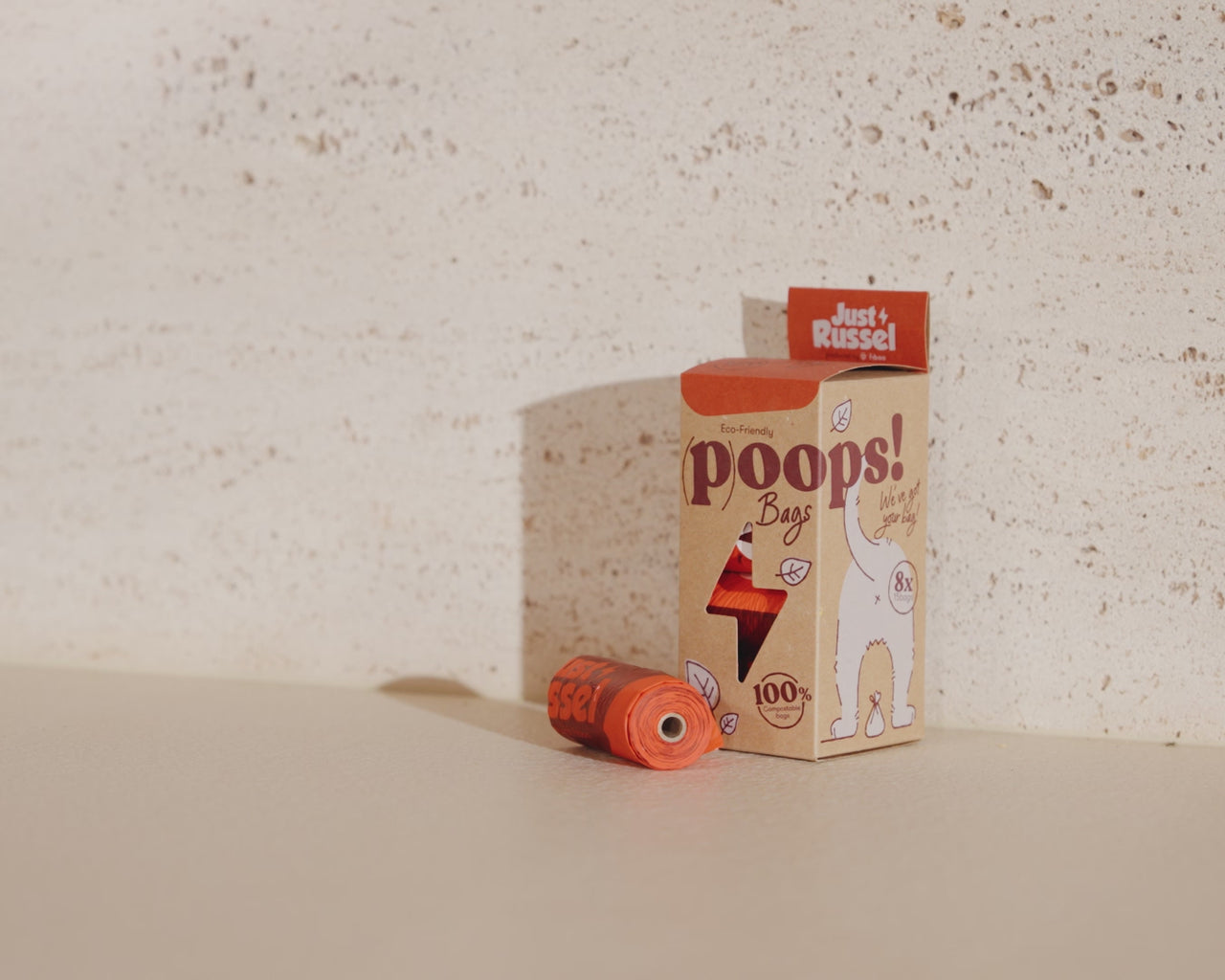 " Met onze composteerbare poepzakjes kun je gemakkelijk opruimen en tegelijkertijd iets goeds doen voor de planeet. "